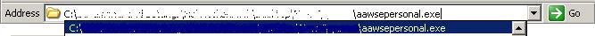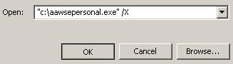 Type “<location copied from the address bar>” /X (example: “C:\aawsepersonal.exe” /X )